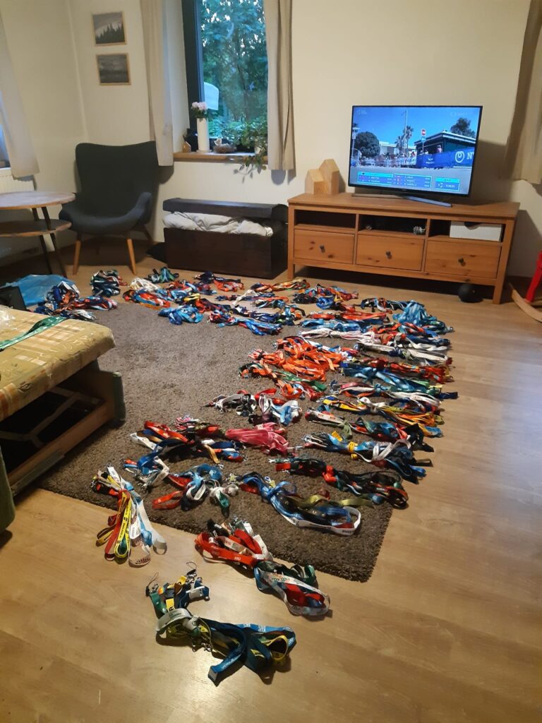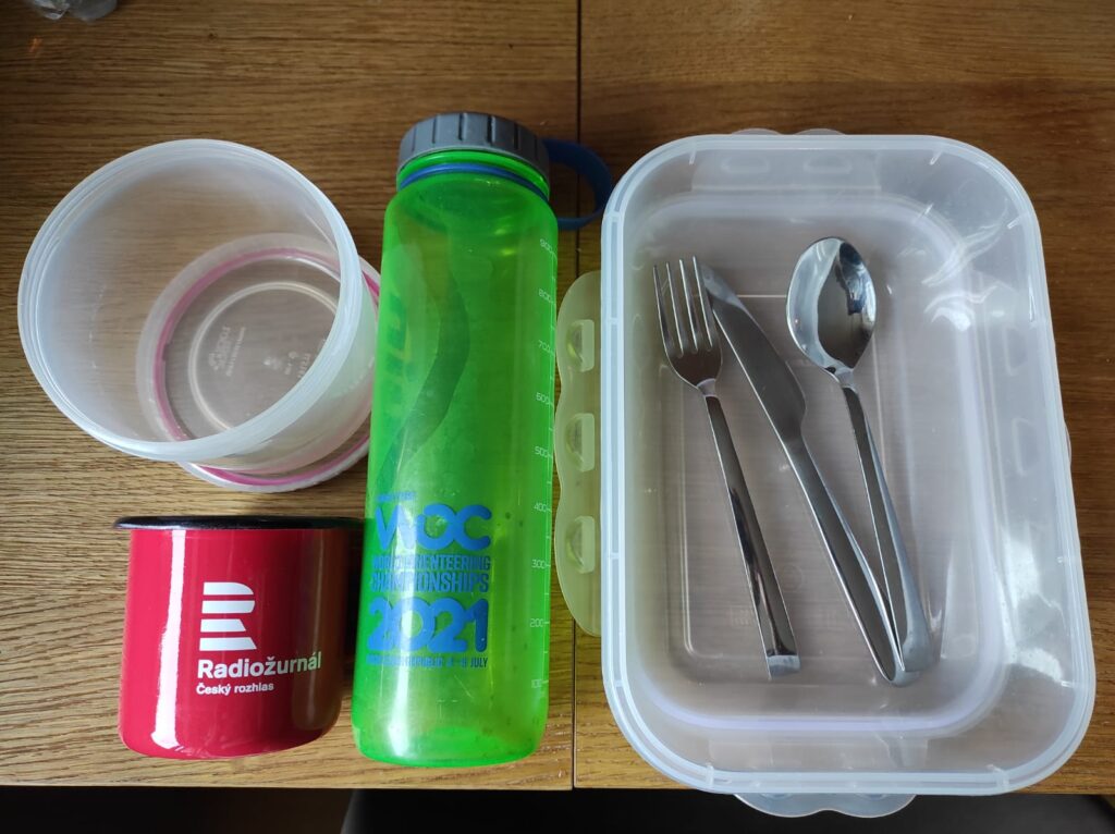 Dále jako organizátoři máme s sebou vlastní nádoby na obědy a večeře, vlastní znovupoužitelné kelímky, chceme zamezit používání neekologických jednorázových. Akreditační karty máme na klíčenkách, které jsme vybrali od českých závodníků. Nemuseli jsem tak vyrábět nové, když má skoro každý spoustu nevyužitých klíčenek doma. Stejným stylem jsme vybrali i špendlíky na startovní čísla, jak pro světový pohár, tak i pro veřejné závody Czech O-Tour.